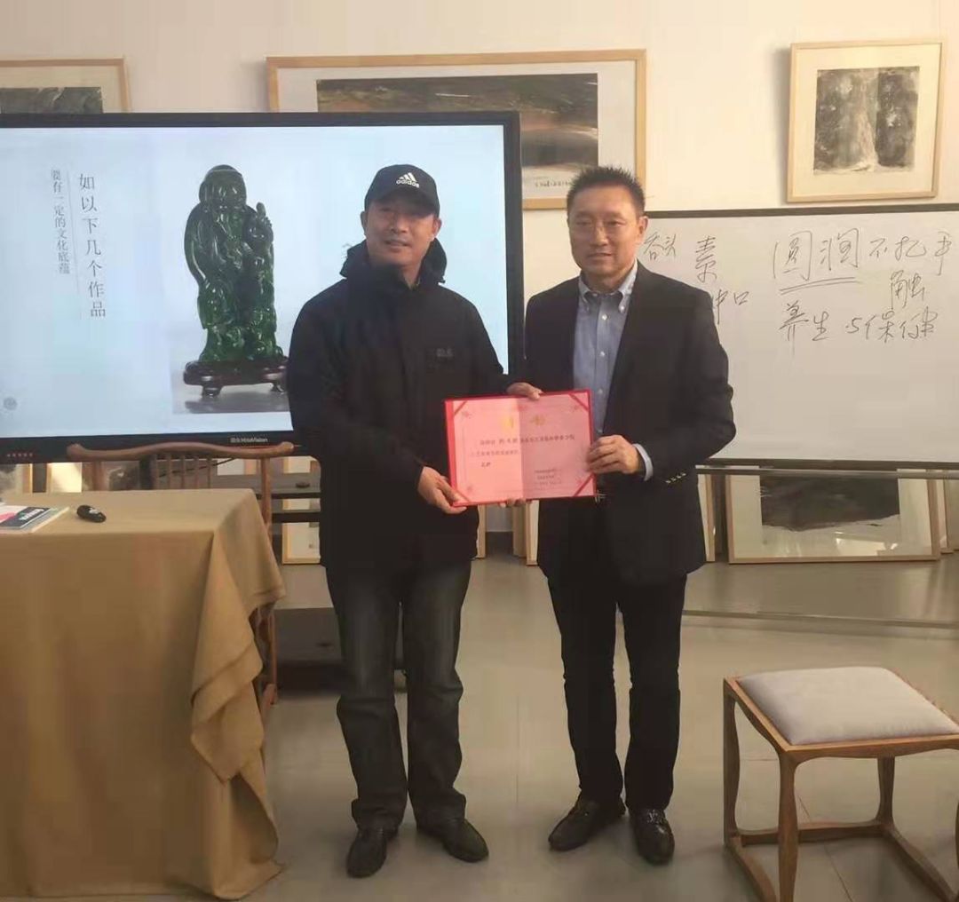 2019年12月14日三十八位玉雕师经过紧张学习,通过相关课程考核,顺利结业,取得CIC中国轻工珠宝(玉石)雕刻师资格培训认证,中维珠宝玉石鉴赏师资格认证,并由江苏旅游职业学院工艺美术学院副院长陆乐教授为玉雕师学员颁发江苏旅游职业学院工艺美术学院玉雕大师高级研修班结业证书。